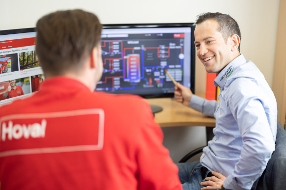 Tím zákazníckeho servisu Hoval je kedykoľvek k dispozícii, aby zabezpečil, že všetky časti systému fungujú efektívne. Systém je podporovaný riadiacim systémom Hoval, ktorý vizualizuje všetky komponenty na monitore PC. Charakteristickým znakom tohto systému je, že máte prehľad o všetkých procesoch v kotolni – od výroby tepla a ukazovateľov výkonu až po distribúciu. Riadiaci systém môže priniesť množstvo výhod vrátane kratšej doby návratnosti.