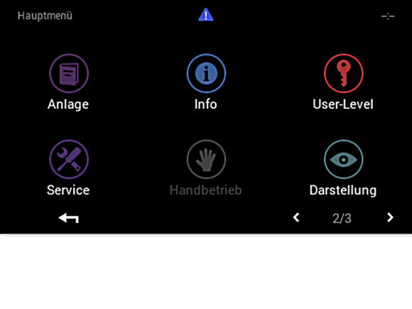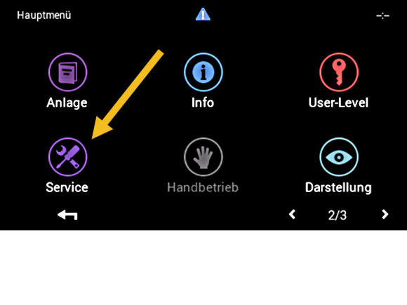 Klicken Sie unten rechts auf den Pfeil um auf die 2. Seite mit Einstellungsmenüs zu gelangen.