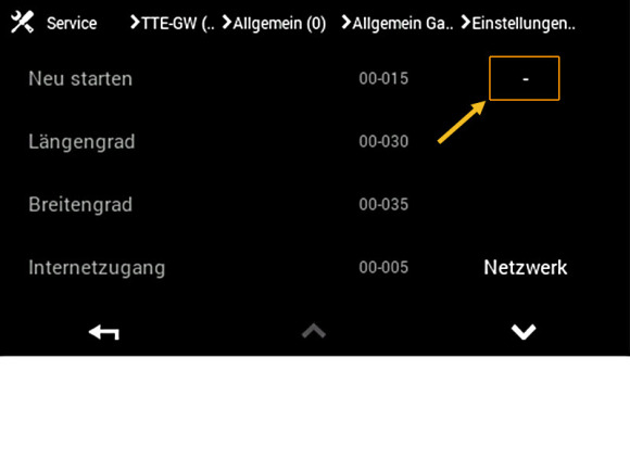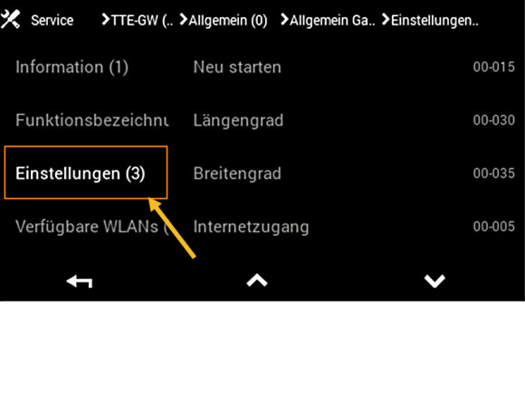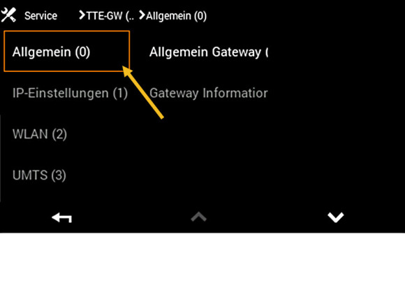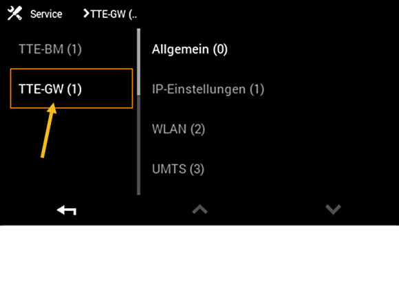Wählen Sie den Menüpunkt TTE-GW (TTE-Gateway) aus.