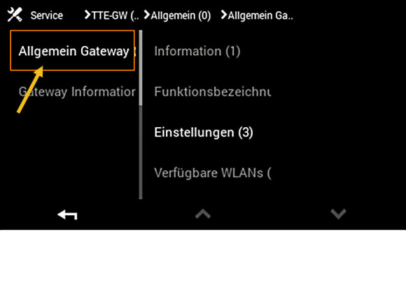 Wählen Sie den Menüpunkt Allgemein Gateway aus.