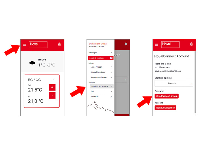 Es gibt zwei Möglichkeiten das Passwort für HovalConnect zu ändern: