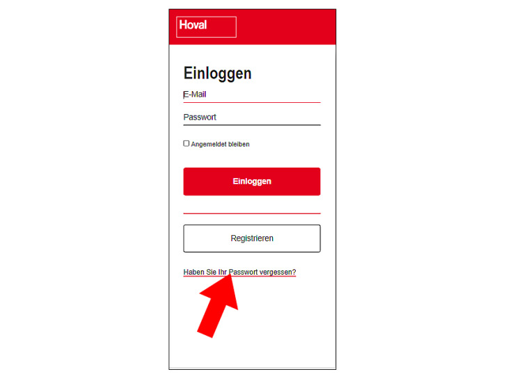 - Gehen Sie zu connect.hoval.com und klicken auf "Haben Sie Ihr Passwort vergessen?"